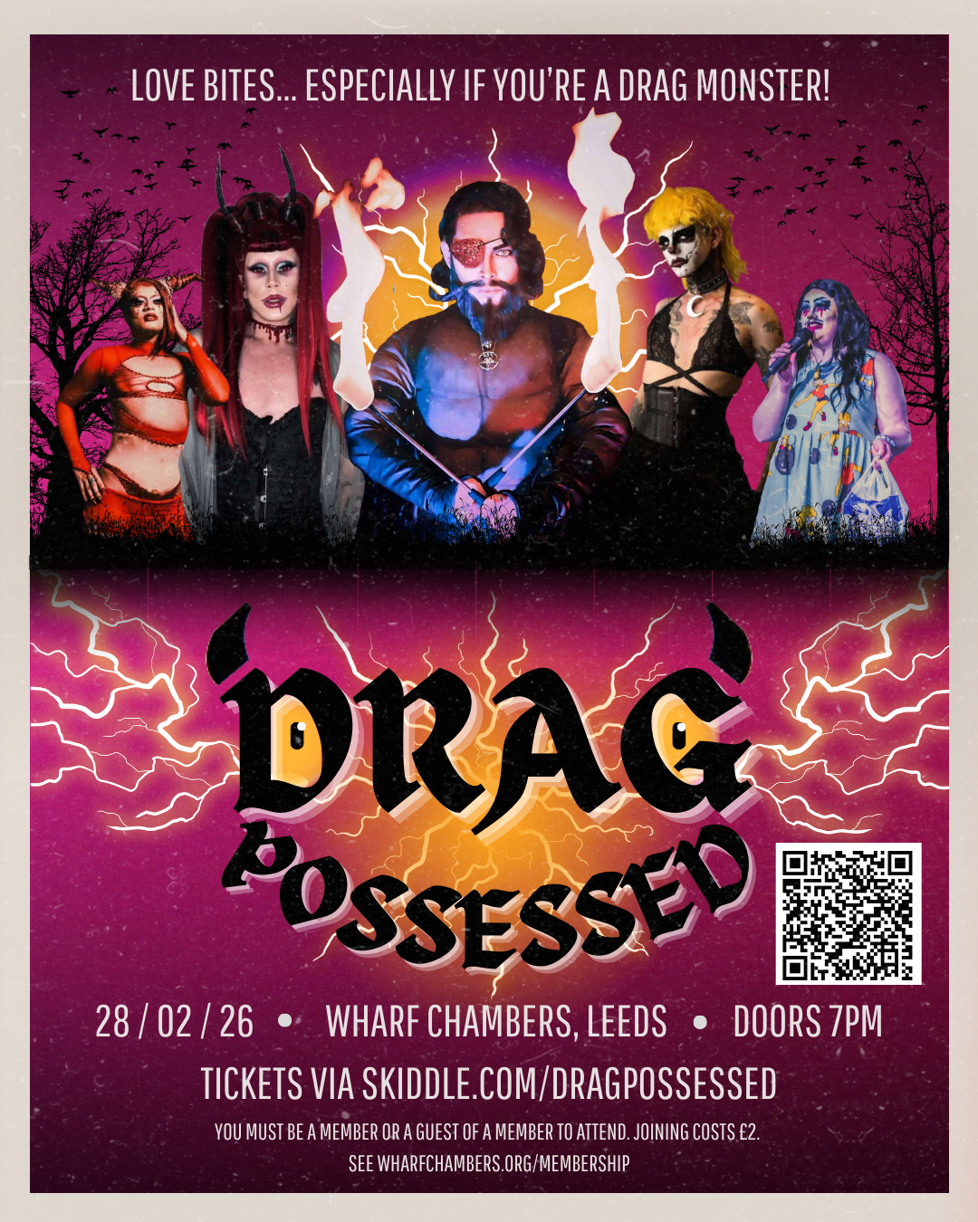 Tickets:  https://www.skiddle.com/whats-on/Leeds/Wharf-Chambers/Drag-Possessed-Love-Bites/41664860/