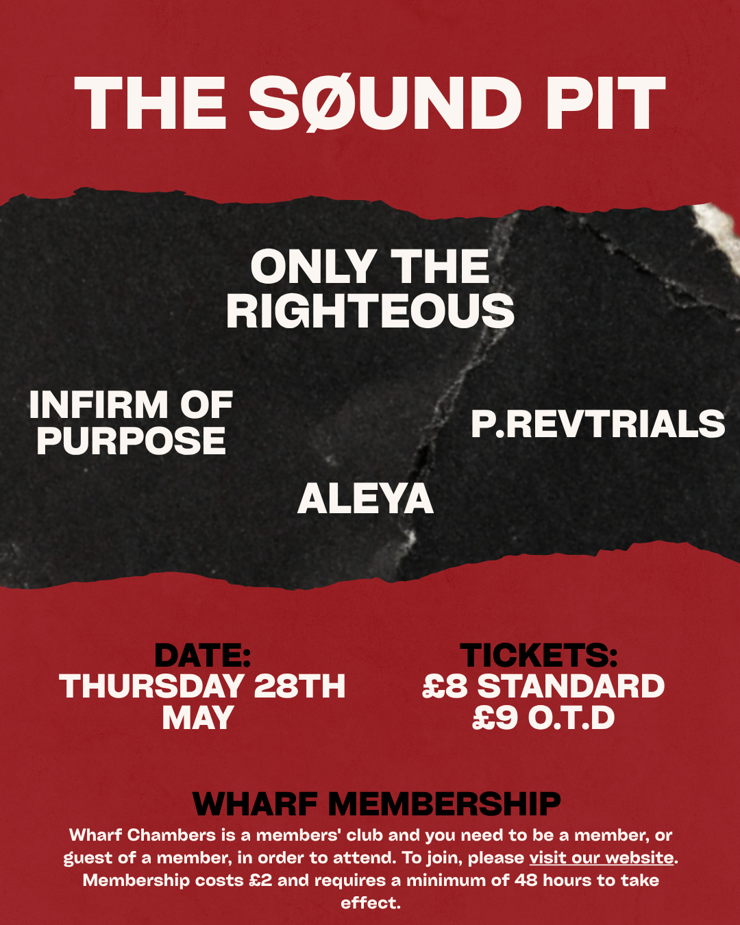 Four emerging bands bring crushing riffs, raw noise and high volume to one of Leeds’ most renowned underground venues, Wharf Chambers. The Søund Pit is a night dedicated to heavy music in its purest form — no barriers, no frills, just loud amps, sweaty crowds and bands giving it everything on stage. Expect a mix of fresh local talent and high-energy performances in an intimate setting built for live music. Please note that you must be a member or a guest of a member to attend. Membership costs £2 and can be arranged via wharfchambers.org/membership.