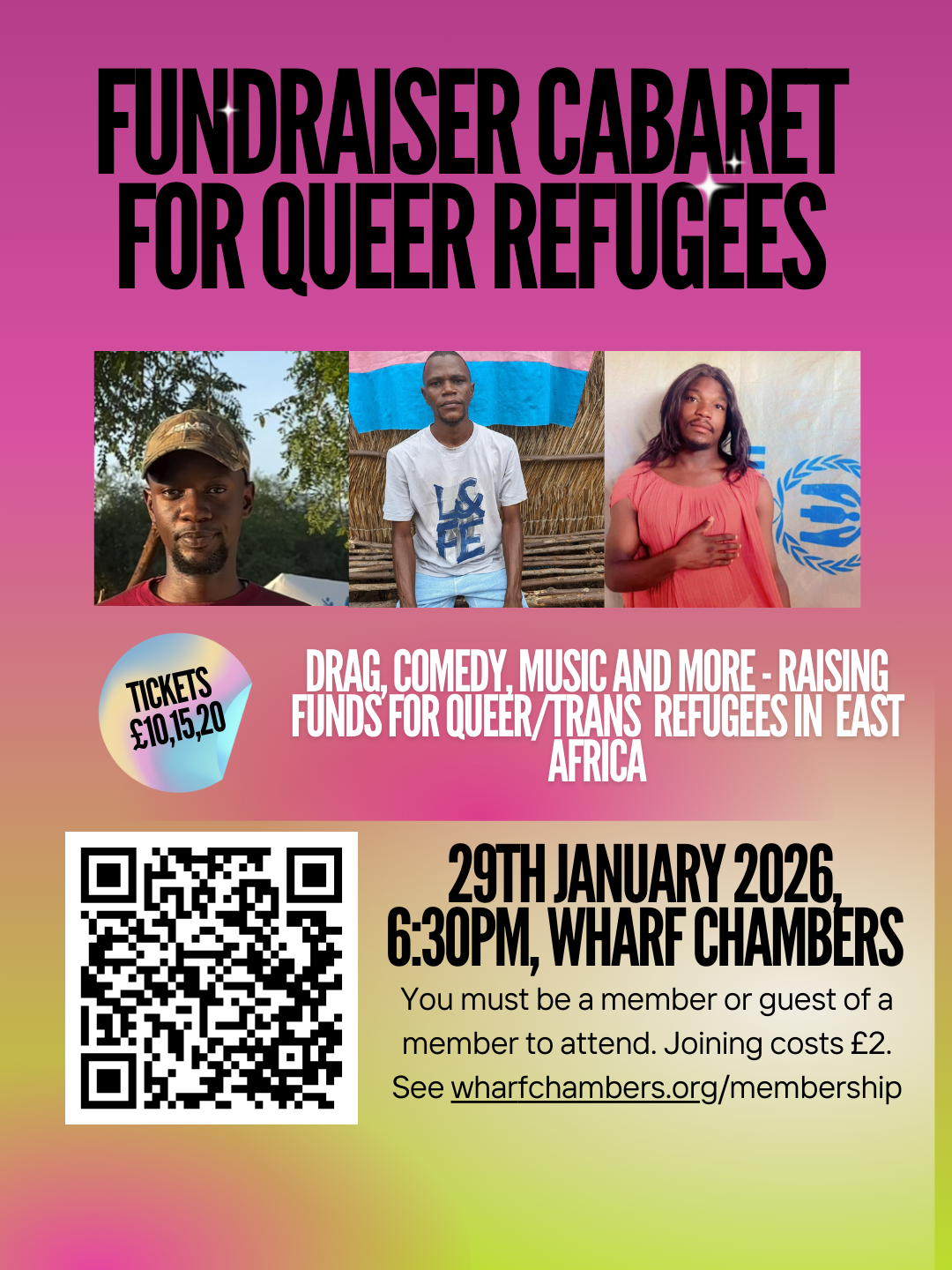 A night of queer comedy, drag and music to raise funds for queer/trans refugees. All profit will be distributed between three refugees and their fundraisers. Tickets: https://www.eventbrite.co.uk/e/cabaret-fundraiser-for-queer-refugees-tickets-1974979963235?aff=oddtdtcreator.