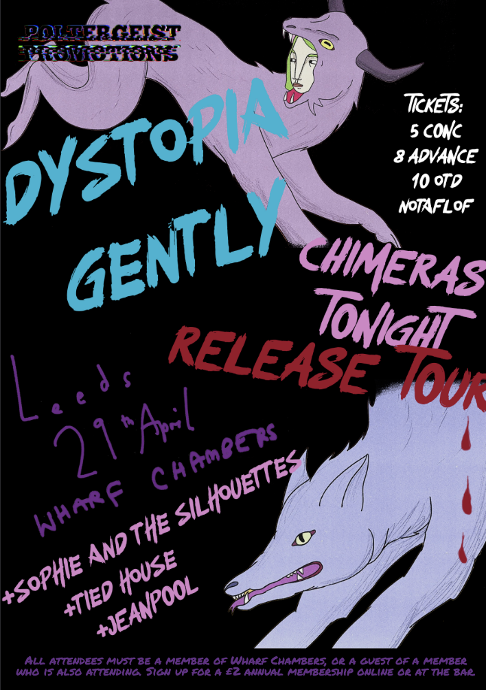 Birmingham queer alt rock band Dystopia Gently release their first single “Chimeras Tonight (Too Mercury)” in March 2026 and are visiting DIY venues around the country to celebrate. Combining elements of garage rock, psychedelic rock, and shoegaze with band members’ classical and jazz training for something new every minute. With support from indie rock Jeanpool, […] |